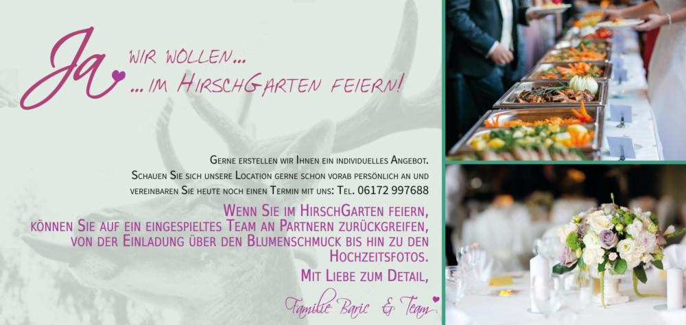 Darüber hinaus ist der HirschGarten eine ausgezeichnete Location für Ihre nächste Feier.