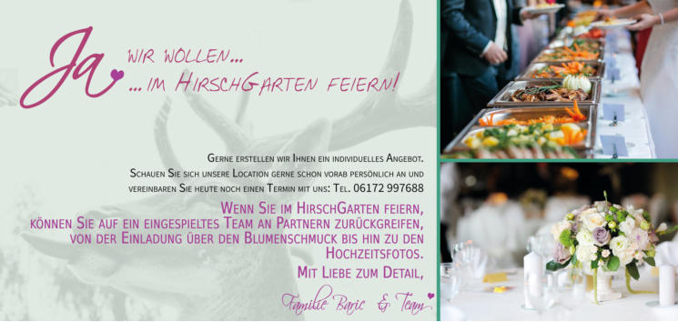 Darüber hinaus ist der HirschGarten eine ausgezeichnete Location für Ihre nächste Feier.
